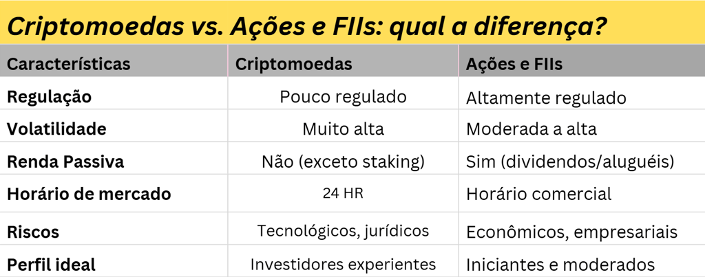 Criptomoedas e Ativos Digitais: Riscos, Oportunidades e Diferenças em Relação a Ações e FIIs